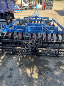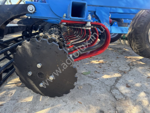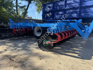 Основні переваги: • Диск Ø 470 мм — забезпечує достатню масу та інерцію для проникнення у ґрунт, навіть якщо він не оброблявся чи має більшу щільність. • Причіпна конструкція — дозволяє легко переміщати, транспортувати та агрегувати з тракторами середньої потужності. • Регульована глибина обробки — можливість налаштування глибини від ~5 до ~12-15 см, залежно від умов ґрунту чи технології вирощування культур. • Кут атаки дисків — оптимально підібраний для ефективного різання та змішування шару ґрунту, зменшення зносу та енерговитрат. • Надійні компоненти — високоякісні підшипники, стійки, диски (товщина та матеріал), що витримують інтенсивну експлуатацію та мінімізують обслуговування. • Економія пального та часу — більша швидкість роботи (залежно від трактора) та менші витрати на паливо/обслуговування порівняно з комбінацією плуг + культиватор.