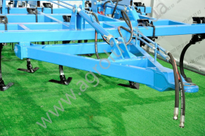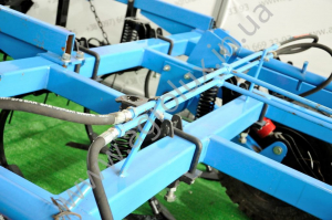 Регулювання глибини ходу культиватора забезпечується 4-ма гвинтовими стяжками, що змінюють кут нахилу гідрофіцірованних колісних механізмів. При цьому при роботі гідроциліндри повністю закриті, при транспортуванні - повністю відкриті. Незалежно від регулювання глибини транспортний кліренс буде більше, ніж 300 мм. Доступ до елементів регулювання зручний, так як всі точки розташовані біля переднього бруса культиватора.