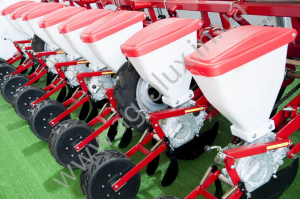 Тукковисівний апарат Внесення мінеральних добрив проводиться окремо від насіння через окремі анкерні сошники, що настроюються. Під добрива використовуються пластикові бункери, що унеможливлює процес деформації від хімічного впливу добрив.