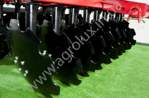 Лущильники дискові типу Паллада 2.4 - дворядні з діаметром диска 560мм призначені для використання з тракторами від 80 к.с в грунтокліматичних умовах по всій території України, а також на полях з великою кількістю поживних залишків. Кожен диск борони встановлений на індивідуальній суцільнолитій стійці, що дозволяЄ бороні працювати на полях з великою кількістю рослинних залишків і бур'янів, виключаючи намотування рослинних залишків на вісь диска і забивання міждискового простору, а також забезпечуЄ високу технологічність агрегату. Конструкція агрегату забезпечуЄ плавне регулювання кута атаки кожного ряду дисків в межах від 0 ° до 30 °, що дозволяЄ оптимально налаштувати борону для різних умов використання.
