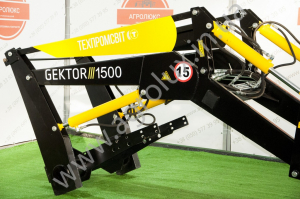 Фронтальний погрузчик Gektor 1500 на трактор з ковшом призначений для навантаження та розвантаження різних сільськогосподарських вантажів (сіна, соломи, гною, мінеральних добрив, піску і т. п.) в транспортні засоби та з них, змішувальні установки та машини для внесення добрив, для механізації всередині складських робіт з затарених і не затарених мінеральними добривами, для перевезення і укладання в скирти рулонів і копиць сіна, соломи та інших робіт.
