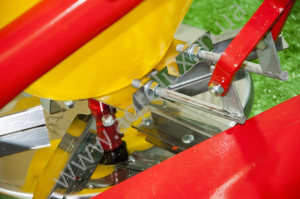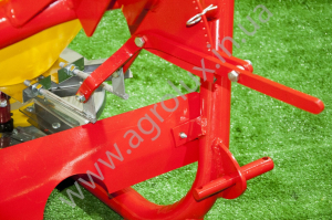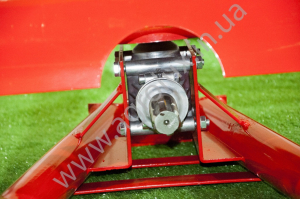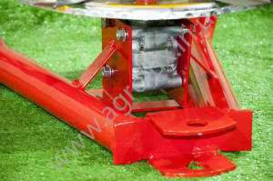Диск приводиться в рух кутовою передачею і карданним валом. Привід з кутової передачі передається також на мішалку, яка знаходиться усередині ящика для добрив.