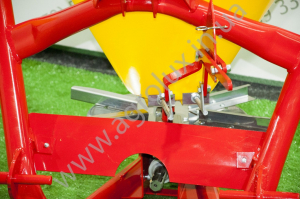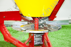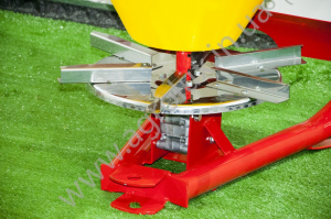 Дозування добрив відбувається через два отвори, які знаходяться на дні конуса. На передній частині конуса знаходиться механізм, який регулює дози внесення добрив (регулюється вручну важелем). Внесення добрив здійснюється диском з чотирма розсіюючими лопатками. Шляхом відповідної установки лопаток на диску можна регулювати ширину внесення добрив (від 8м до 24 м).