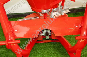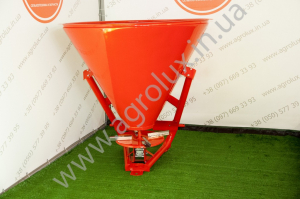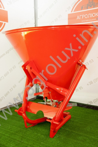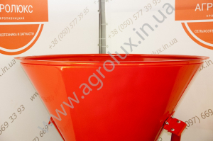 Розкидач мінеральних добрив 500 кг., тарілка фарбована (4 пелюстки), металевий. Ручне відкривання заслінок. Конус лійки виготовлений з металу, фарбований.