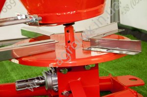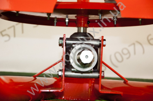 Диск приводиться в рух кутовою передачею і карданним валом. Привід з кутової передачі передається також на мішалку, яка знаходиться усередині ящика для добрив.