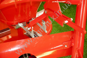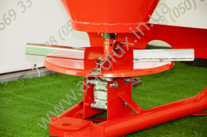 Дозування добрив відбувається через два отвори, які знаходяться на дні конуса. На передній частині конуса знаходиться механізм, який регулює дози внесення добрив (регулюється вручну важелем). Внесення добрив здійснюється диском з чотирма розсіюючими лопатками. Шляхом відповідної установки лопаток на диску можна регулювати ширину внесення добрив (від 8м до 24 м).