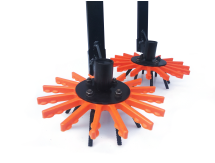Принцип роботи агрегату дуже простий! В його основі задіяно принцип висмикування, це можна порівняти з делікатною ручною працею. При цьому , еластичні полімерні пальці обертаються навколо рослин і видаляють бурян на стадії білої нитки, підрихлюючи рунт, руйнуючи кірку та покращуючи киснезабезпечення та водопоглинання. А вузол підпружинювання дозволяє підтримувати агрегат у робочому занурюванні незалежно від рельєфу рунту.