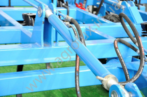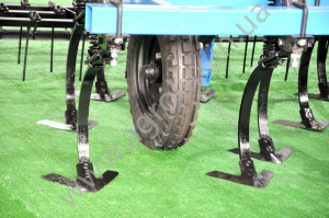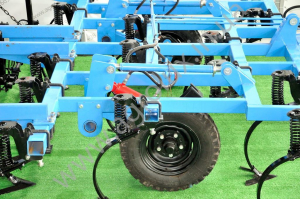 Регулювання глибини ходу культиватора забезпечується 4-ма гвинтовими стяжками, що змінюють кут нахилу гідрофіцірованних колісних механізмів. При цьому при роботі гідроциліндри повністю закриті, при транспортуванні - повністю відкриті. Незалежно від регулювання глибини транспортний кліренс буде більше, ніж 300 мм. Доступ до елементів регулювання зручний, так як всі точки розташовані біля переднього бруса культиватора.