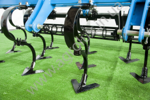 Лапи розставлені в 4 ряди таким чином, що мінімальна відстань між сусідніми в ряду - 650 мм, між рядами -480 мм, між сусідніми в плані - 210 мм, що при робочій ширині лапи 270 мм забезпечує перекриття 60 мм.Пружинно-зубовая борона складається з Двобалочний рами, на якій з кроком 250 мм встановлені зуби в 2 ряди зі зміщенням 125мм.Рама підвішена на 4-х повідках на штангах і фіксується обмежувальної ланцюгом. що дозволяє безперешкодно підніматися вгору від заданого рівня ходу.