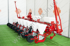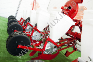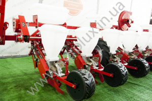 Пропашні універсальні пневматичні сівалки точного висіву АгроЛюкс 8-03 забезпечують посів на кінцеву густоту, крім використання ручної праці при формуванні необхідного інтервалу між рослинами . За рахунок розташування осі опорно-приводних коліс на одній лінії з насіннЄвими сошниками досягаЄться синхронне копіювання рельЄфу поля як рамою, так і посівною секціЄю.