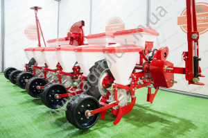 Універсальна пневматична сівалка від АгроЛюкс групп, призначена для точного (пунктирного) висіву каліброваного насіння: кукурудзи, соняшнику, сорго, сої, а також насіння кормових бобів: сої, квасолі і люпину з одночасним, роздільним від насіння, внесенням гранульованих мінеральних добрив і прикочуванням грунту в рядах.