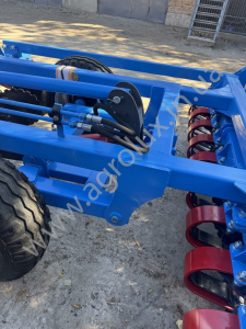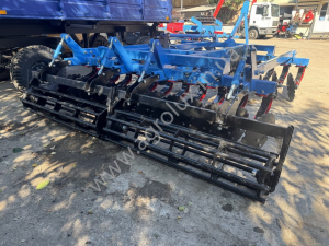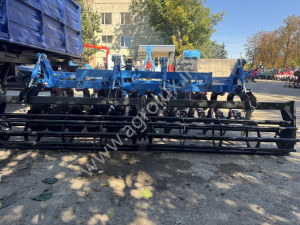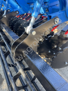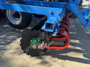 Основні переваги: • Диск Ø 470 мм — забезпечує достатню масу та інерцію для проникнення у ґрунт, навіть якщо він не оброблявся чи має більшу щільність. • Причіпна конструкція — дозволяє легко переміщати, транспортувати та агрегувати з тракторами середньої потужності. • Регульована глибина обробки — можливість налаштування глибини від ~5 до ~12-15 см, залежно від умов ґрунту чи технології вирощування культур. • Кут атаки дисків — оптимально підібраний для ефективного різання та змішування шару ґрунту, зменшення зносу та енерговитрат. • Надійні компоненти — високоякісні підшипники, стійки, диски (товщина та матеріал), що витримують інтенсивну експлуатацію та мінімізують обслуговування. • Економія пального та часу — більша швидкість роботи (залежно від трактора) та менші витрати на паливо/обслуговування порівняно з комбінацією плуг + культиватор.