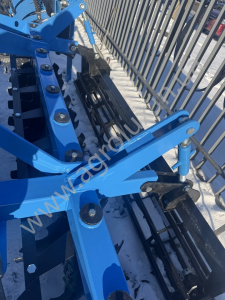 Нова конструкція регулювання глибини обробітку ґрунту за допомогою плавної перестановки гвинта. Дана конструкція спростила регулювання робочої глибини обробітку ґрунту, при цьому підвищила довговічність роботи машини.
